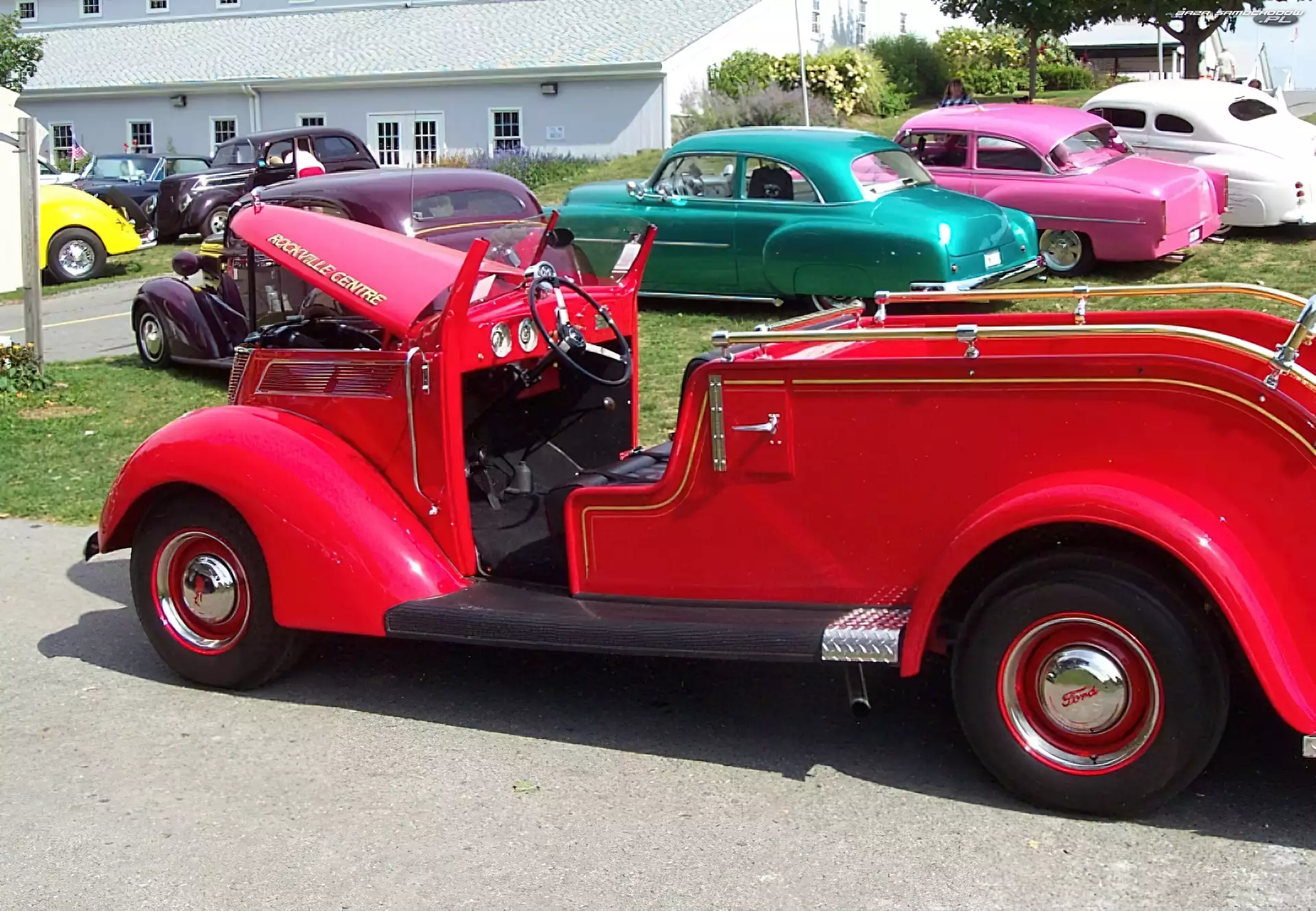 Wystawa, Zabytkowy, Chrysler Airflow Ford GT Lotus Elite, Pierwsza, Wersja Stop, Aston Martin DB4, Pit Ford, Przód Ford Taurus, Prawa, Strona Ford Taurus, Dealer tył , szyby, Alfa Romeo, okna GT500, Ford Mustang, Shelby Raptor, Ford F150, SVT Ford Shelby Cobra Concept Ford Mustang, Czerwony koła, Bugatti, 13 bagażnik, opony , koła , Aston Martin, światła
