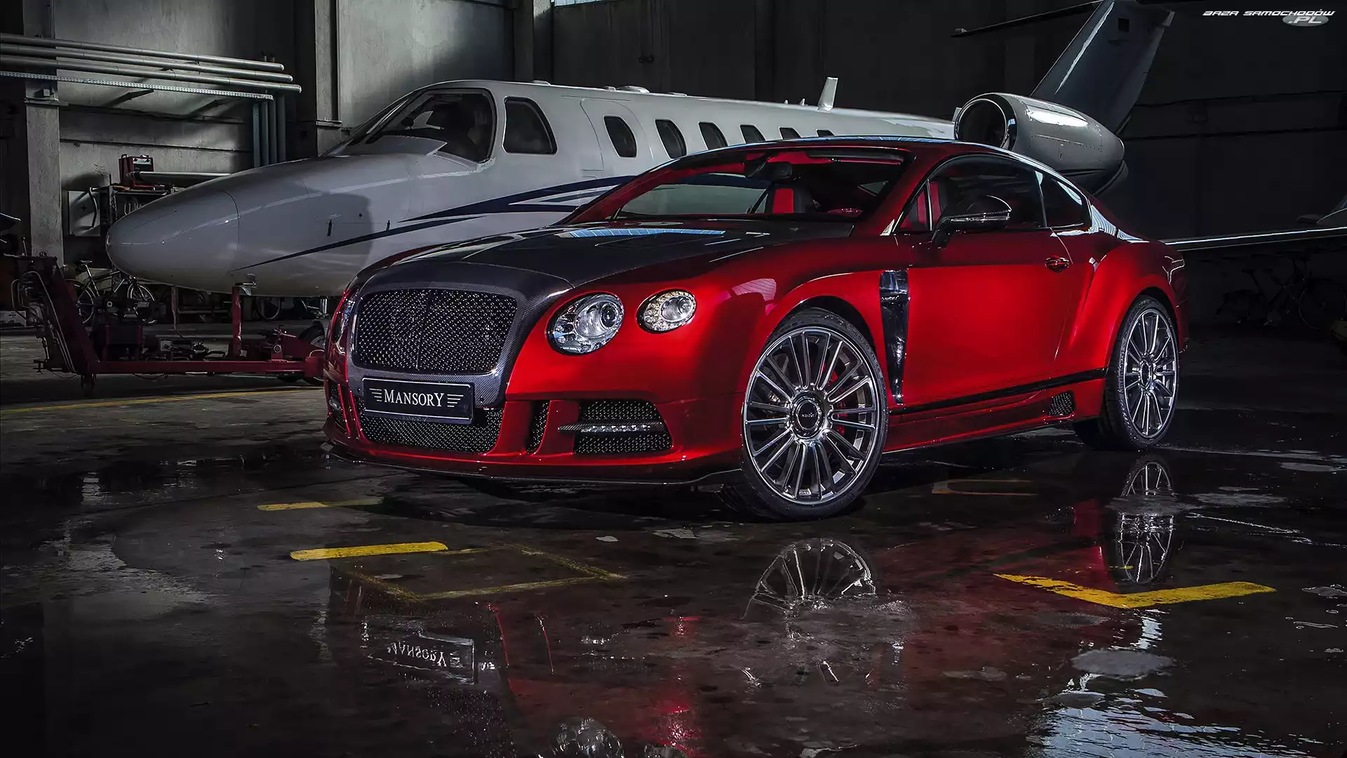 Samochód: Hangar, Samolot, Bentley, Czerwony, Continental